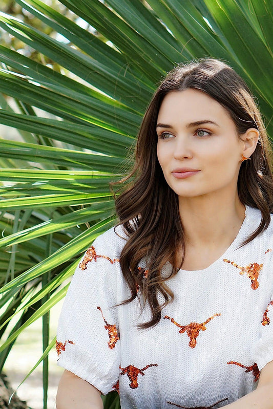 Texas Longhorns Slogan Earrings in Burnt Orange/Shiny Gold