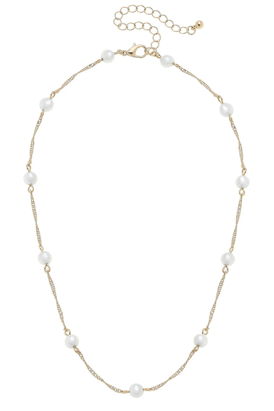 Audrey Pearl Necklace in Ivory & Shiny Gold