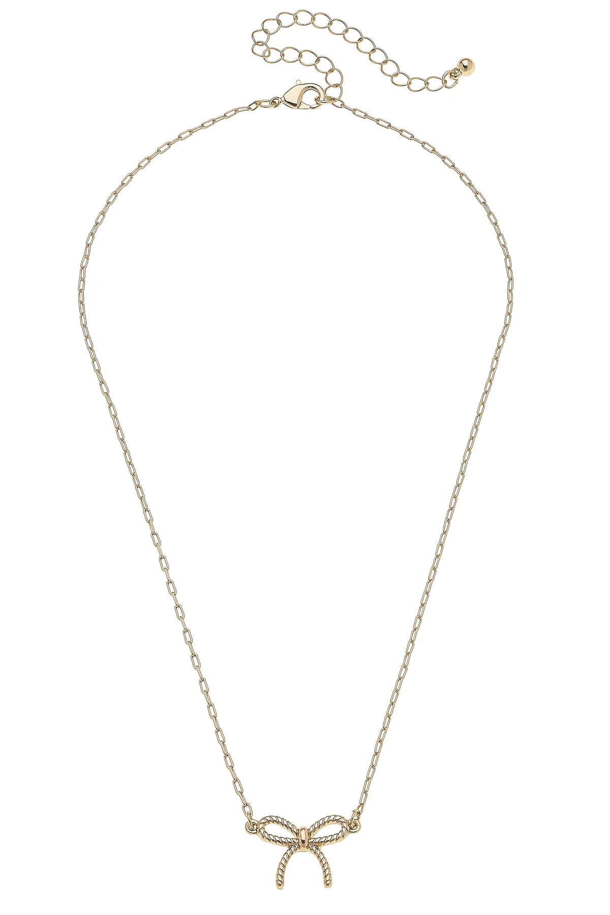 Bessie Rope Bow Necklace in Shiny Gold
